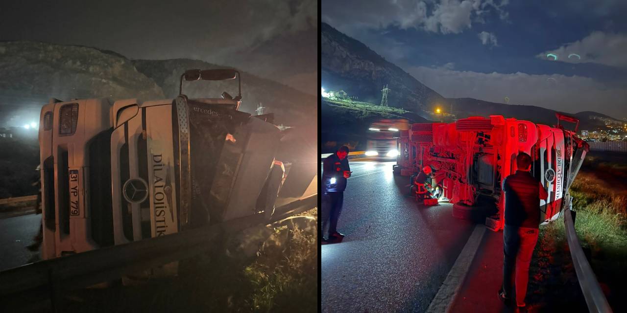 Bölgeden geçen 1 TIR’ın dorsesindeki konteyner ise fırtınanın etkisiyle yola devrildi.